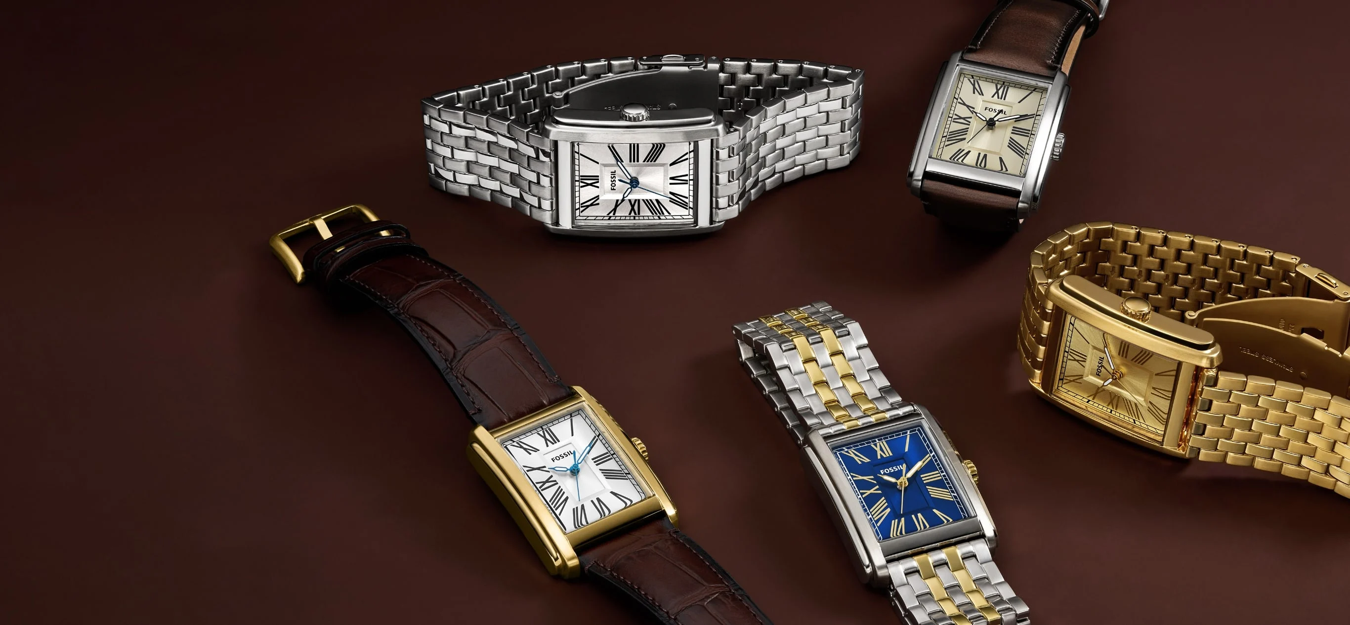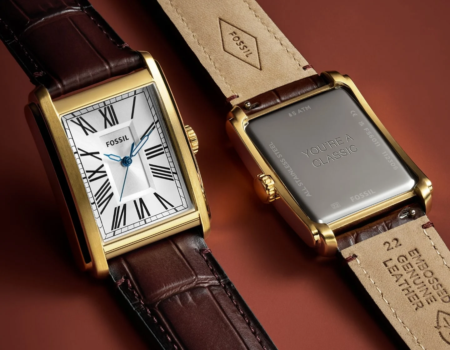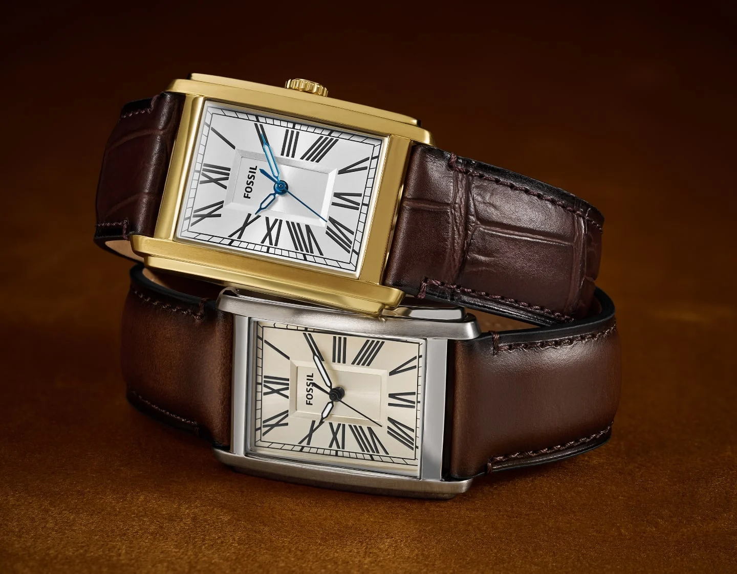 Đồng hồ nam Fossil Carraway dây da, mặt chữ nhật 30 MM, màu nâu, FS6011